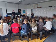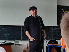 Am letzten Dienstag, 2. April 2024, klopfte ein ganz besonderer Gast an unsere Tür: Der Autor, Carlo Meier, tauchte auf. Er nahm die lange Reise von Zug zu uns auf sich, um uns einen Vorgeschmack auf sein neues Buch "Star am Abgrund" zu geben. Für dieses besondere Event versammelten sich alle drei 5./6. Klassen im Musikzimmer. Nach der Lesung durften wir ihm Löcher in den Bauch fragen. Er verriet uns, dass er die Kaminski-Kids mit seinen eigenen drei Kids (seinem Sohn und seinen zwei Töchtern) erfunden hat. Seine eigenen Kinder sind nun schon aus dem Haus, aber er haut immer noch packende Geschichten über die Kaminski-Kids raus. Ganze 21 Bände davon gibt es schon! Unglaublich, aber er braucht etwa neun Monate für jedes Buch. Nach weiteren zwölf Monaten können wir es dann in unserer Bibliothek verschlingen. Carlo Meier zeigte uns sogar ein Video der Kaminski-Kids, in dem Marco Rima mitspielt. Die Pannen und Versprecher der Outtakes-Ausschnitte waren fast noch witziger als das eigentliche Video. Wer wollte, konnte sich am Ende ein signiertes Buch von Carlo Meier schnappen. Jedes Kind bekam sogar eine schicke Autogrammkarte als Geschenk!